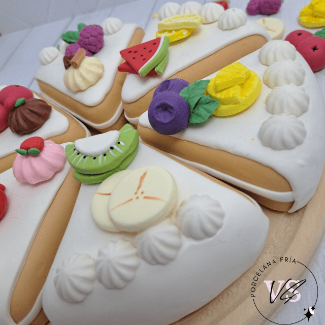 6 porciones, con doble imán cada una y 24 frutas con imán